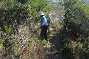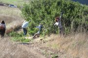 Well over 100 people helped fix up three trails in Wildwood Park on October 21, with 89 volunteers plus COSCA rangers and several members of the Conejo Youth Conservation Corps (CYCC). Participants split into several group and spread out to fix ruts, cut back encroaching vegetation, including cactus, clean out old drains and even build some new drains!