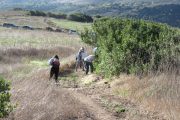 Three groups hiked up the Santa Rosa Trail to work on different sections. Two groups hiked over to the Stagecoach Bluff Trail to fix ruts and to define the edge of the trail with rocks. Another group headed down the Moonridge Trail to fix ruts and cut back overgrowing brush.