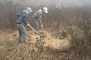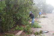 The third group, in the parking lot itself, worked on cutting back brush that was growing into the parking area. Here are the photos: